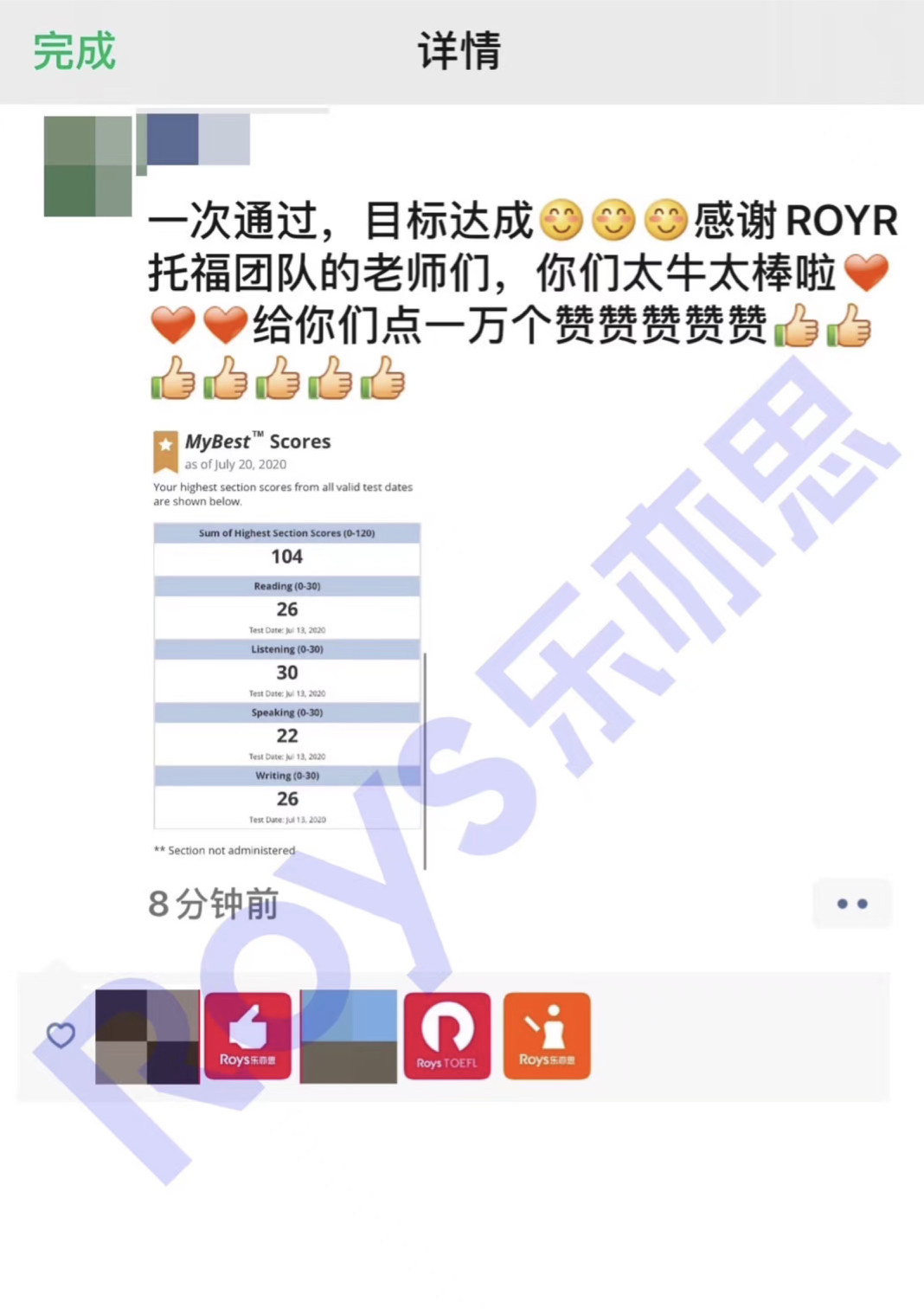 Roys樂亦思托福課程學員實現46到68的突破,下一站爭取更高分!