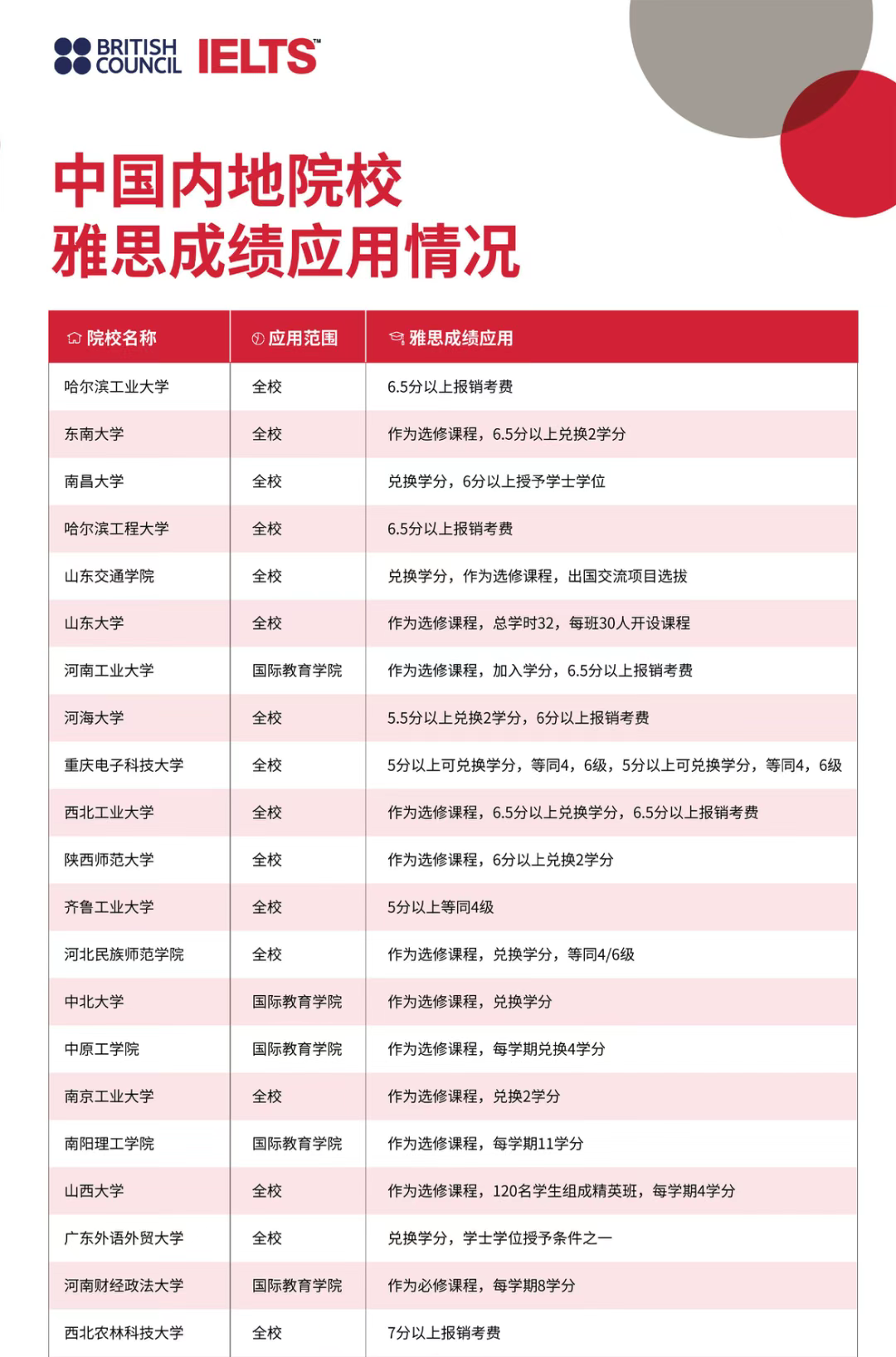 雅思成績帶來的優勢,遠不止于求職。在學業和人生規劃中,它同樣能創造多重價值。在央企/國企,語言能力達標是進入海外業務線的敲門磚,項目獎金也十分可觀。在學業方面,想保研的同學,英語成績是高校篩選申請者的“第一道關卡”,不少高校已將雅思成績納入保研門檻,國內院校還設立雅思專項獎學金,激勵學生提升英語水平。目前,已有近300所國內高校將雅思作為權威英語能力評定標準,用于選校課程兌換學分、免修大學英語等。