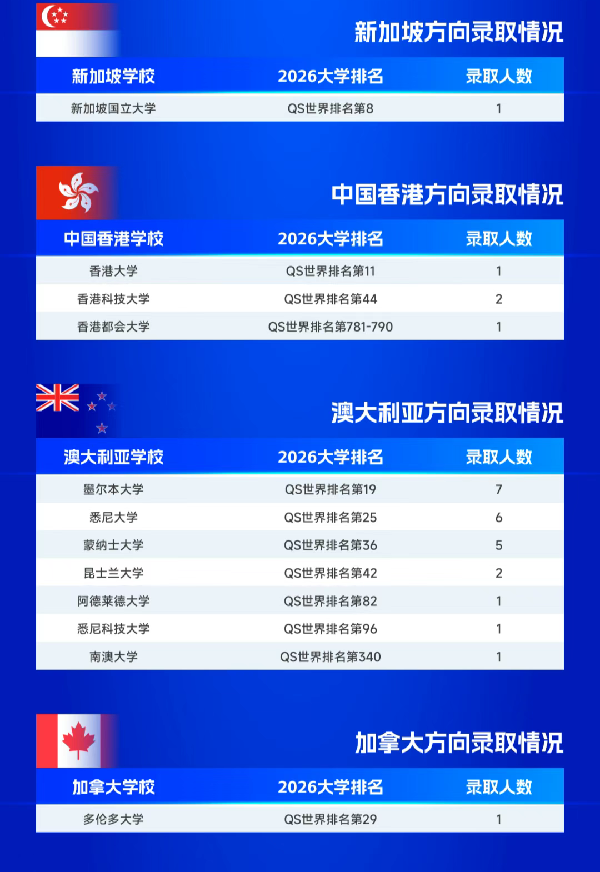 別擔心,樂亦思的A星計劃來助你一臂之力,幫你圓夢那些頂流院校!今年,無論是英國、香港、新加坡,還是澳洲、加拿大,我們的升學方向都全面開花,成果斐然。