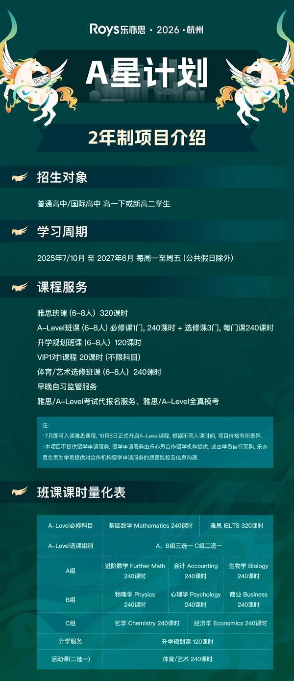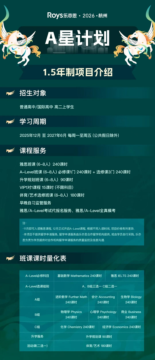 越來越多的家庭開始選擇提早規(guī)劃,為孩子的留學(xué)之路鋪好基石。當(dāng)申請(qǐng)季的鐘聲敲響,樂亦思A星計(jì)劃已經(jīng)蓄勢(shì)待發(fā),準(zhǔn)備助力學(xué)子們沖刺夢(mèng)想中的頂流院校!