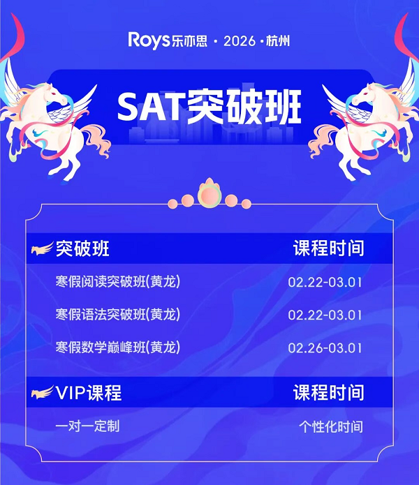 隨著2026年SAT考試時間的公布,很多同學和家長都在思考:怎樣才能穩穩地考出1500+的好成績,甚至沖擊1550+的高分呢?其實,很多家庭選擇在寒假和春季這個黃金學習期發力,就是看中了這段時間能讓孩子實現彎道超車,贏在起跑線上,進而在后續的備考中乘勝追擊,不斷進階。